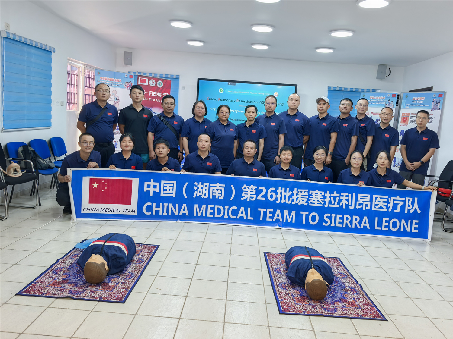 中国(湖南)第26批援塞拉利昂医疗队共23人,所从事专业涵盖内科、外科、儿科等10多个学科,于2025年3月5日进驻塞拉利昂中塞友好医院。进驻之后,医疗队克服药品短缺、设备老化及水电供应不稳定等困难,通过建立药品动态清单、修补漏水水塔及自备应急电源等措施保障医疗工作正常开展。累计完成超过1万人次诊疗,实施近百台高难度外科手术及百余次急救。