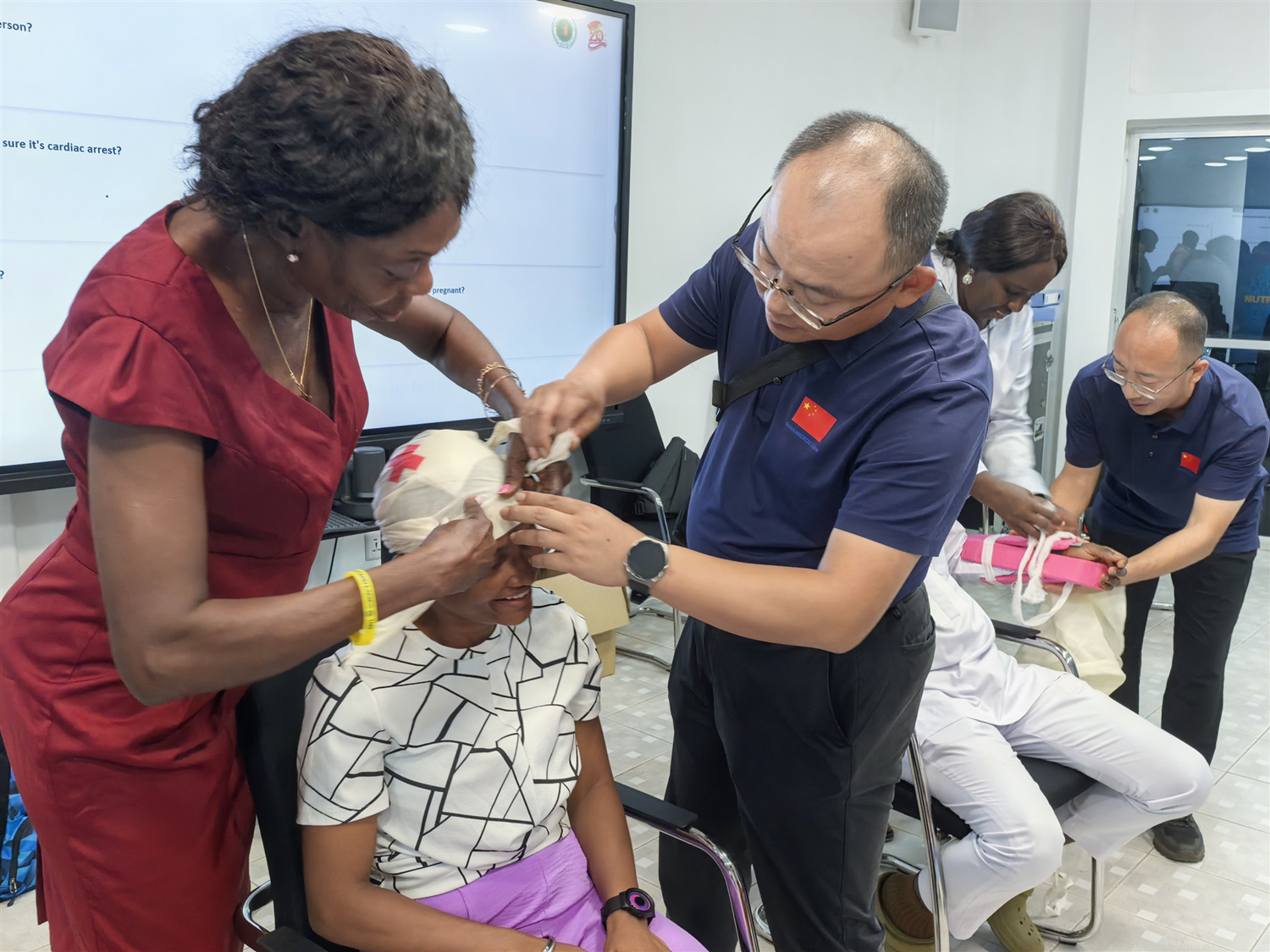 央视网消息 近日,中国(湖南)第26批援塞拉利昂医疗队携手联合国儿童基金会,成功开展“第一目击者”现场急救培训项目,为80名联合国儿童基金会员工带来专业、系统的急救技能培训,以实际行动践行“人人学急救,急救为人人”的理念,筑牢当地急救安全防线,也为中塞医疗合作与国际人道主义协作写下崭新篇章。