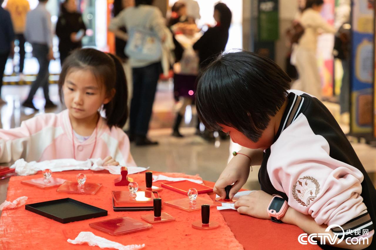 在印章区,打卡集章活动吸引了许多孩童走进博物馆,在边学边玩中了解文物的魅力。宋宁宇 摄