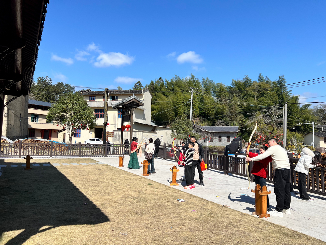 这不是影视基地的拍摄现场,而是甘棠乡为迎接2026年新春精心打造的“武福盈门 凤佑甘棠”系列活动之小梨洋“马年游古村 穿越侠客行”沉浸式主题活动。游客一步入村口,便仿佛“穿越”进了一个充满烟火气、侠气与文气的古风江湖。