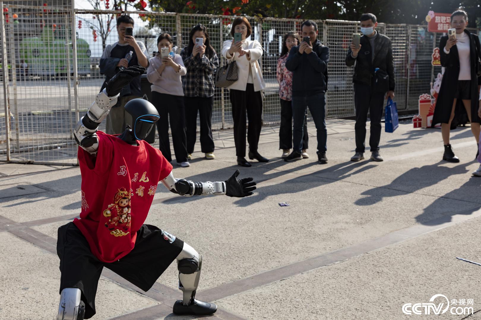 现场的机器人表演,引来游客驻足观看。宋宁宇 摄