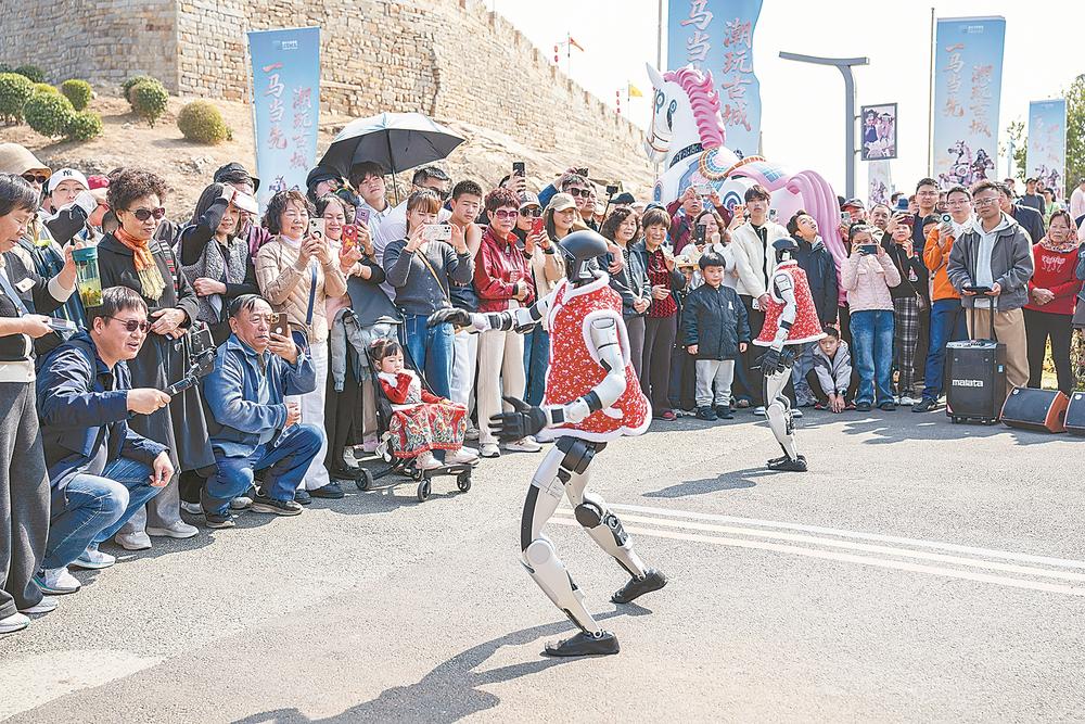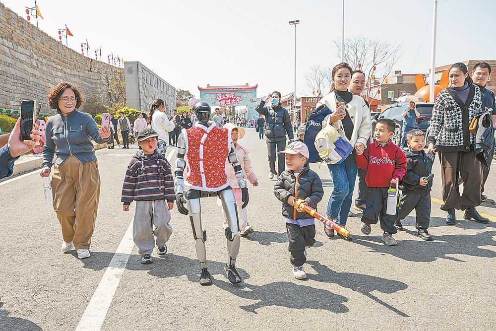 近日,春晚同款机器人亮相崇武古城,吸引不少游客打卡拍照。通讯员 邓文祥 记者 庄钊滢 摄