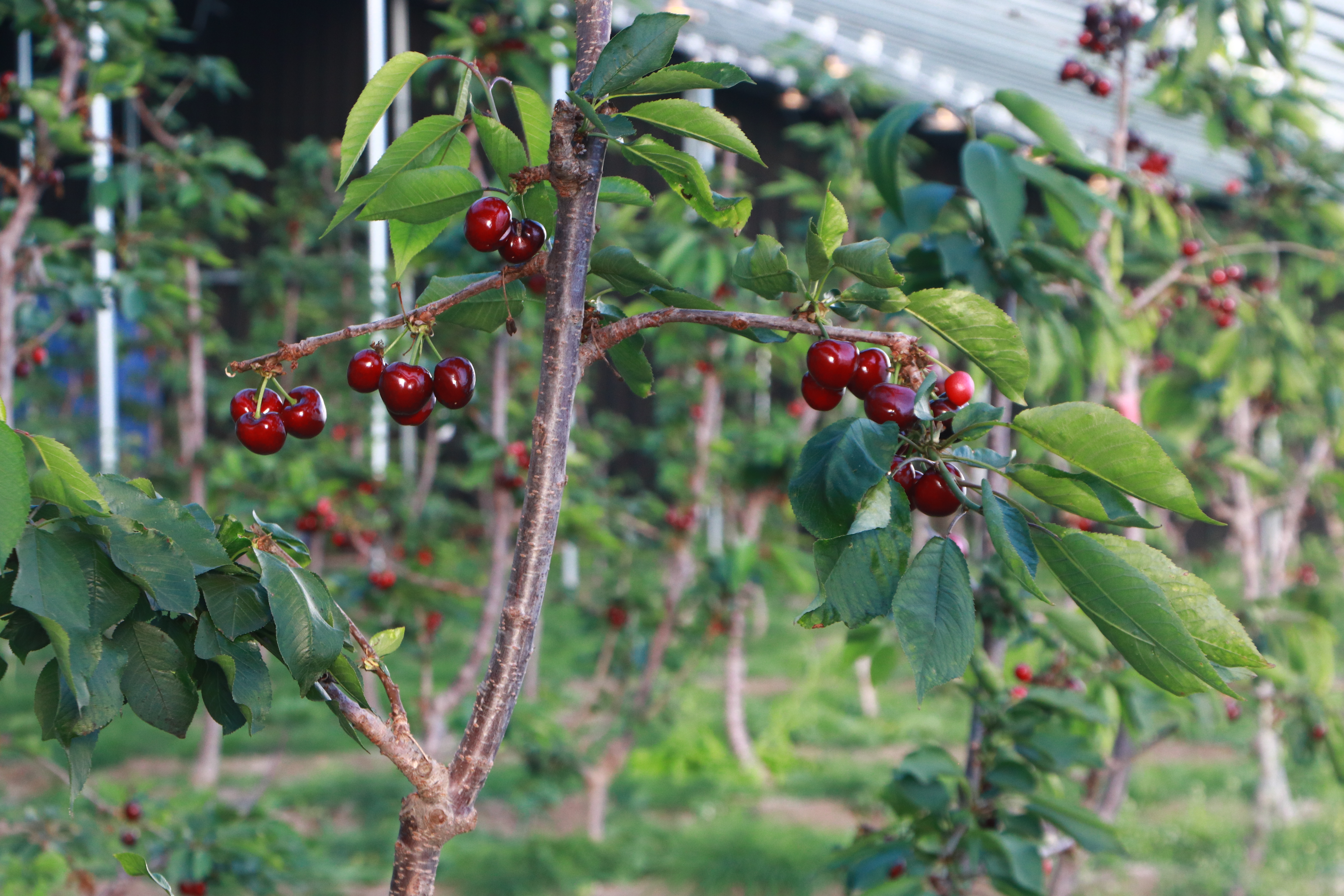 如果说边墙村是“菜篮子”,那么胜利村的樱桃产业园就是太仆寺旗的“果盘子”。走进胜利村的樱桃产业园,52座日光温室内,樱桃果树已是硕果累累,挂满枝头。智能控制系统自动调节温度、湿度、光照,为这些“娇贵”水果创造适宜的生长环境。