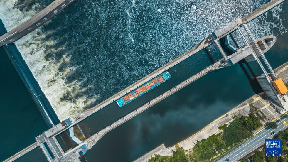 一艘货船通过闽江水口航运枢纽。