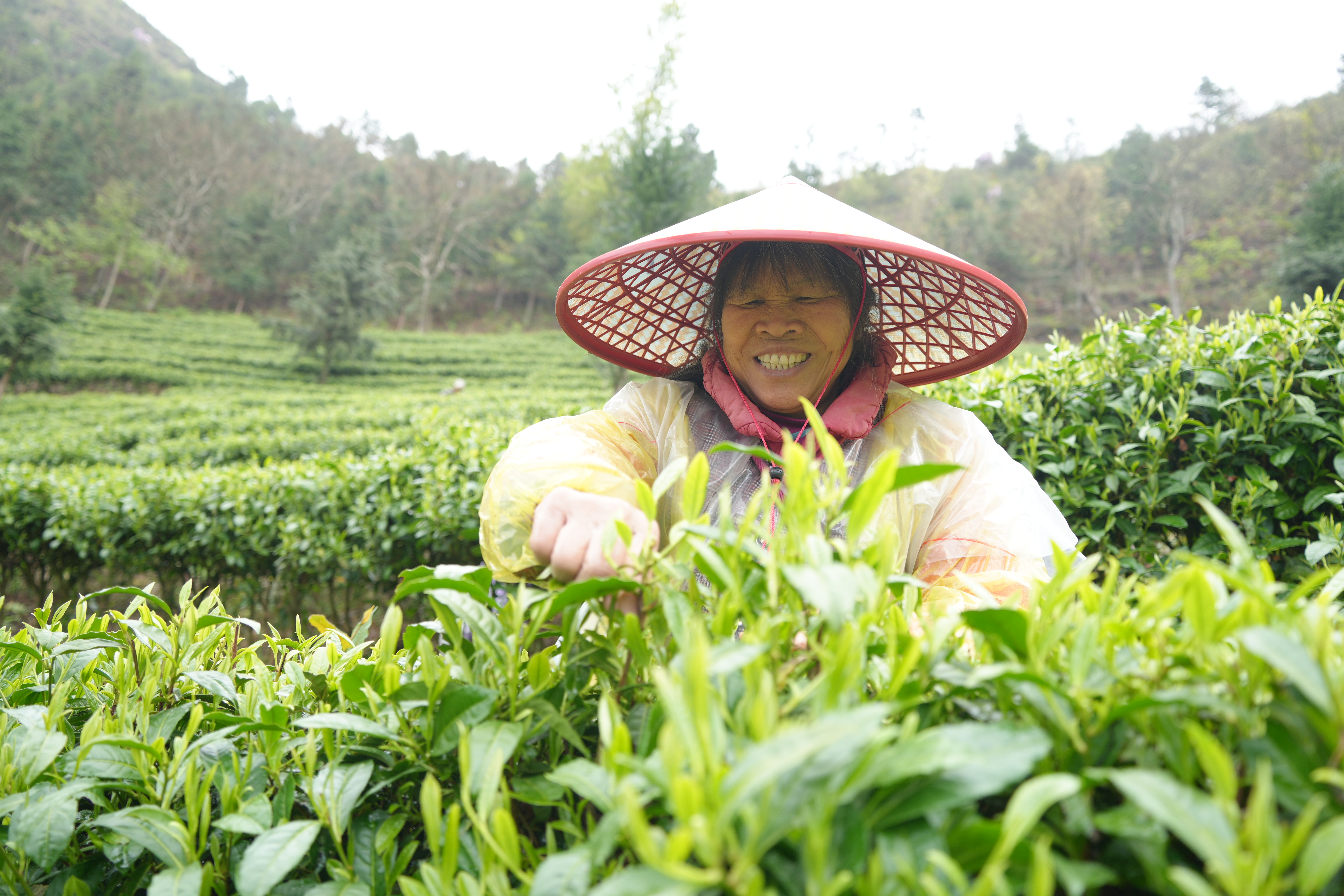 50多岁余三容是这片茶山的“老熟人”了,从修剪、除草、施肥到采摘,一年四季茶园里的都有活。“茶厂就在家门口,方便照顾老人和小孩,每年都有万把块钱收入,老板对我们也很照顾,做起事来特别有干劲。”谈笑间,余三容双手并未停歇,脸上始终洋溢着幸福的笑容。