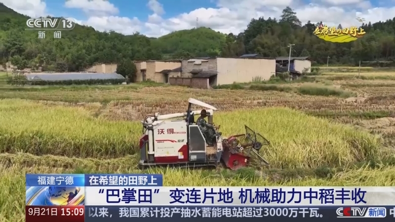 [新闻直播间]福建宁德:“巴掌田”变连片地 机械助力中稻丰收
