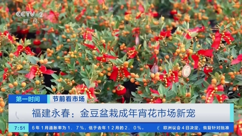 节前看市场·福建永春:金豆盆栽成年宵花市场新宠。