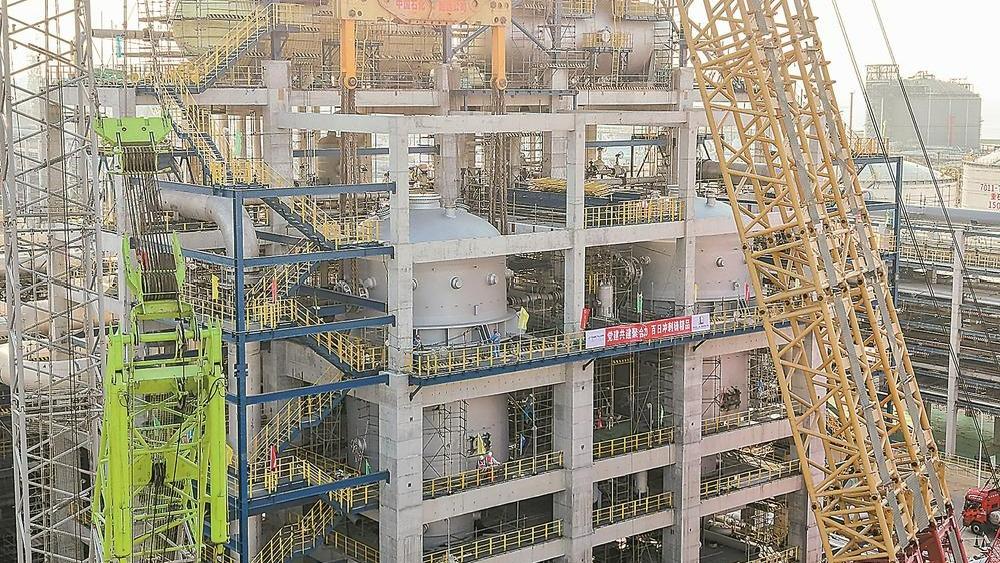刷新世界制造纪录的EO(环氧乙烷)反应器在中沙古雷乙烯项目现场顺利吊装就位。