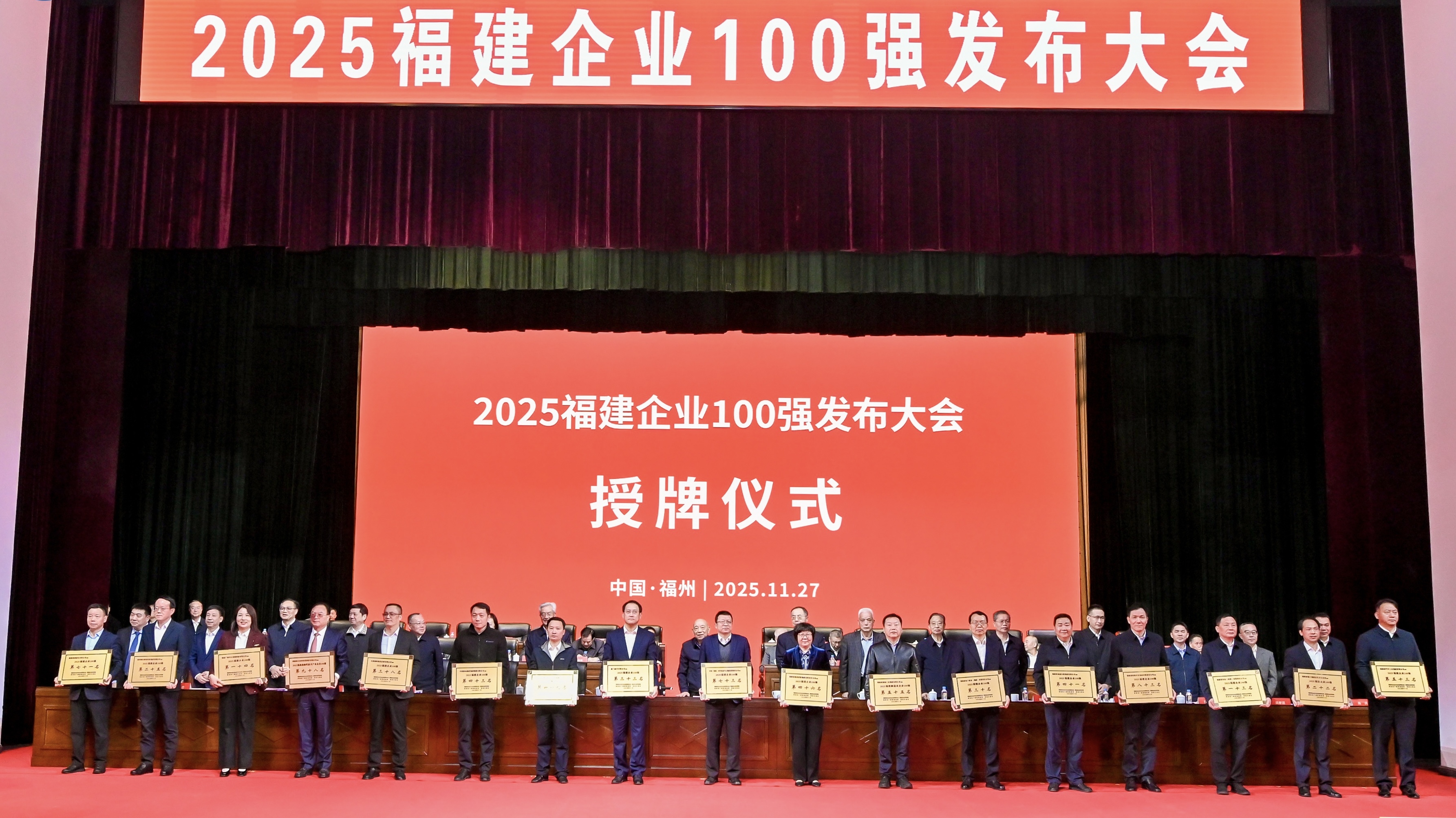 11月27日,2025福建企业100强发布大会在福州市闽侯县召开。