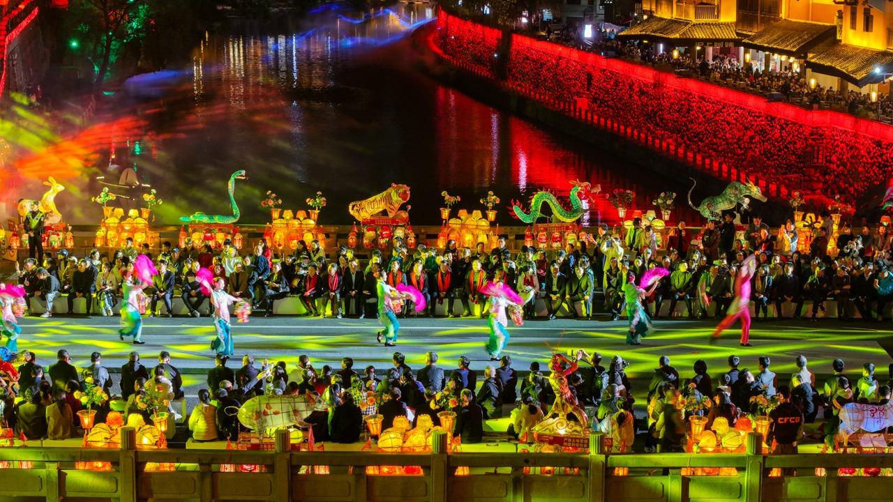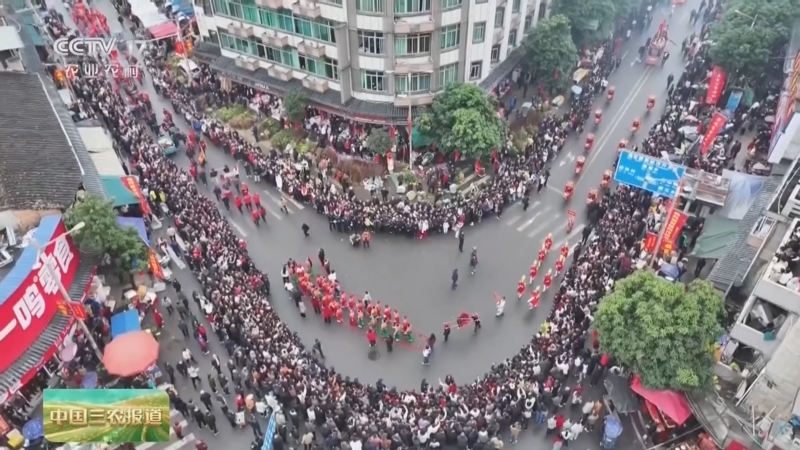 在福建福安的穆阳镇,一场融合腰鼓、舞龙等十多项民俗表演的踩街活动热闹开场。