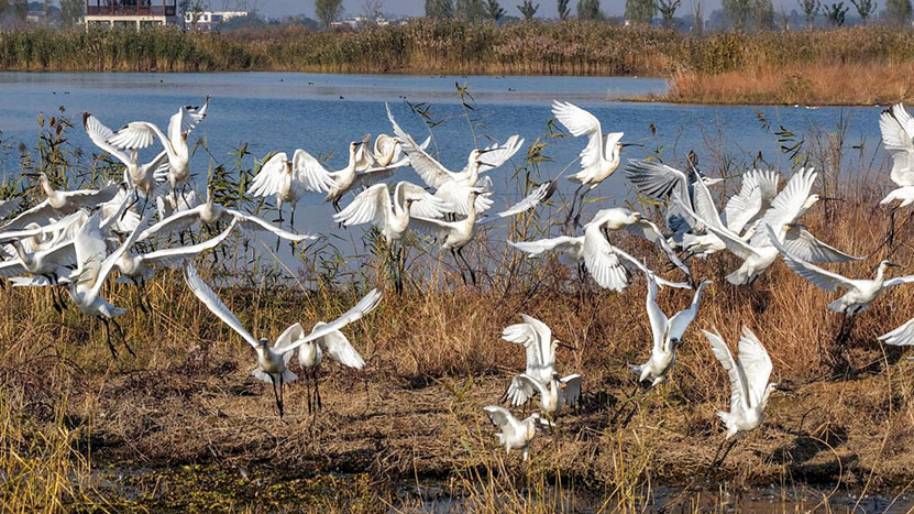 安徽庐江:初冬黄陂湖 喜迎白琵鹭
